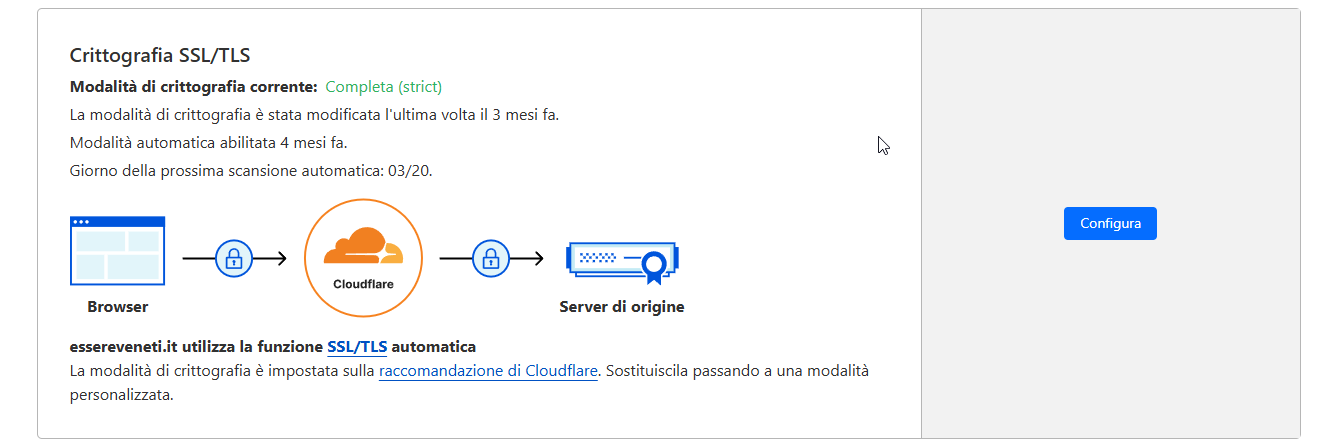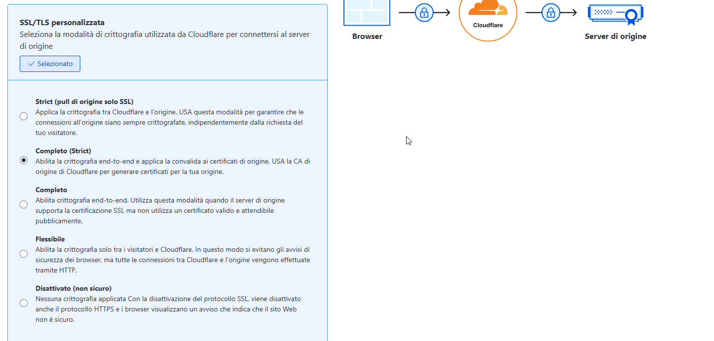 Verificato che nell'account alla voce del menu SSL / TLS assicurarsi che il tipo di certificato sia impostato su COMPLETO.